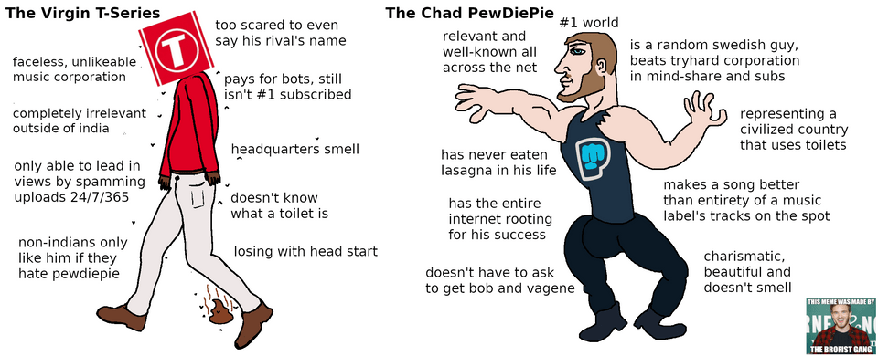 Over 1 million templates, updated continously. Upload image or upload video. Chads are sometimes portrayed as the opposite to omega or beta males, and as aesthetically attractive. On april 18th, youtuber 4chan sound effects uploaded a video titled chad thundercock shows how to ree, in which … When you are democrat but like to browse. Jun 13, 2017 · swole doge vs. Denmark, episode 147 of meme girls in webtoon. The term chad is sometimes used interchangeably with slayer. Chad internet meme of the late 2010s, contrasts an introverted and insecure virgin with a muscular and egotistical chad. Cheems refers to a comparison format in which representatives of the same group from two historical eras are presented as swole doge and cheems and are compared to each other, similar to virgin vs. Memes from the internet turned into cute anime girls, scripts by merry and with artwork by hinghoi, rayno, at2, carillus, ermao wu, & others On december 16th, 2009, the earliest known i wish i was at home ms paint comic was submitted to the internet humor site sad and useless, which features the wojak character standing in a corner at a party (shown below). Fastest way to caption a meme gifmaker.